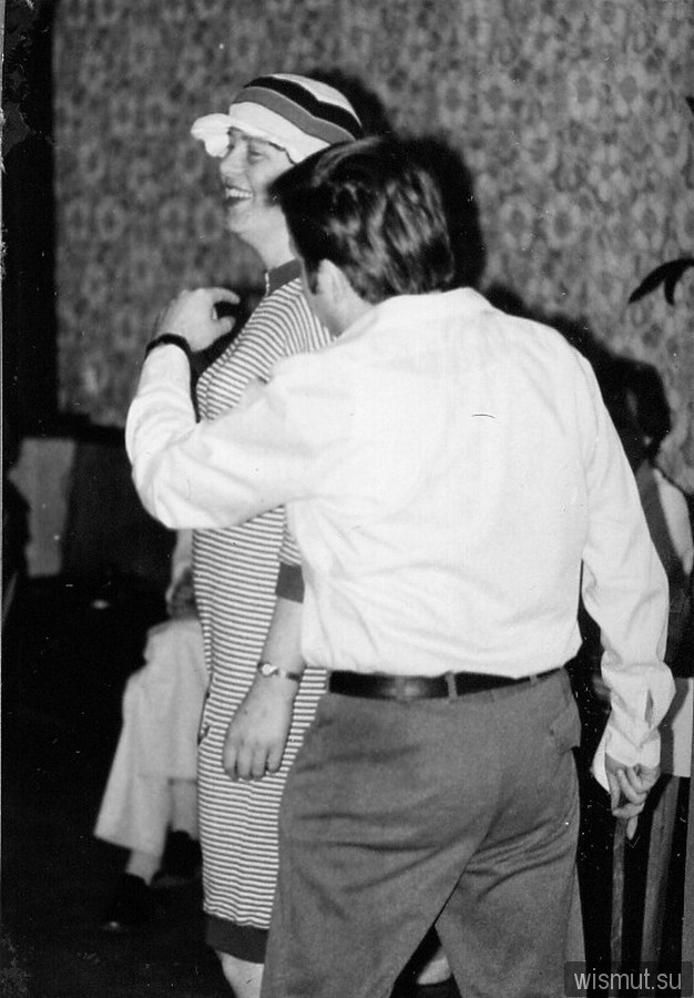 ![]() Бригадный вечер- с шутками, юмором и задором...Schneeberg, 1978г. Коллеги- Зикфрид Майер, Ганс Мёш, Петер Мюллер. Соревнование по раздеванию манекенов с закрытыми глазами. (из архива А.А.Рудычева) |